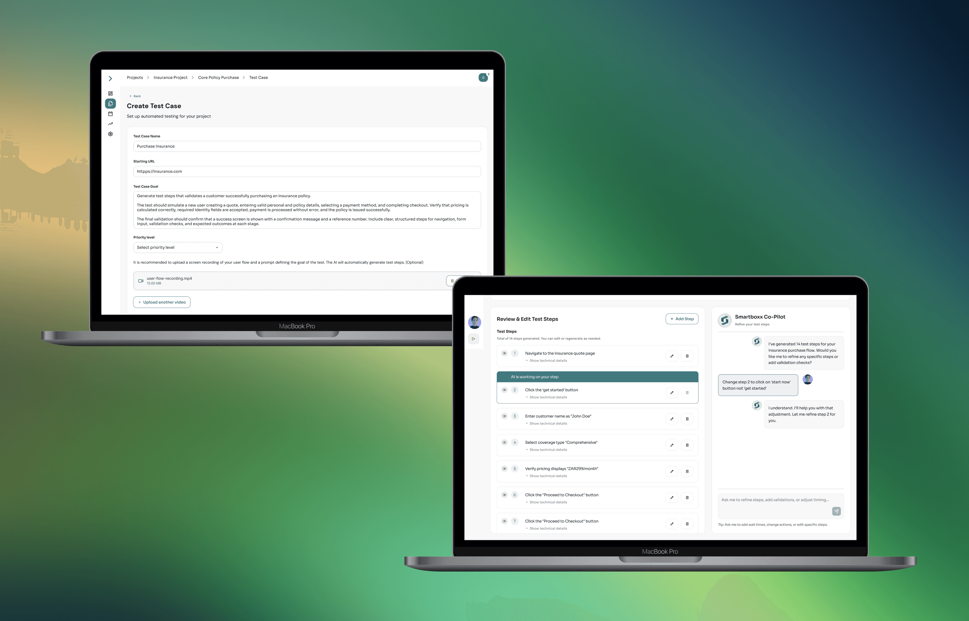 I wanted to make the live testing experience more dynamic and transparent. The Live Browser Mirror streams tests in real time, highlighting each step as it executes. Users can track results instantly, identify errors as they occur, and pause or rerun sections when needed. After completion, results are summarised in clear analytics; pass/fail rates, flakiness trends, and coverage reports, transforming dense test data into visual stories that teams can quickly understand and act on.