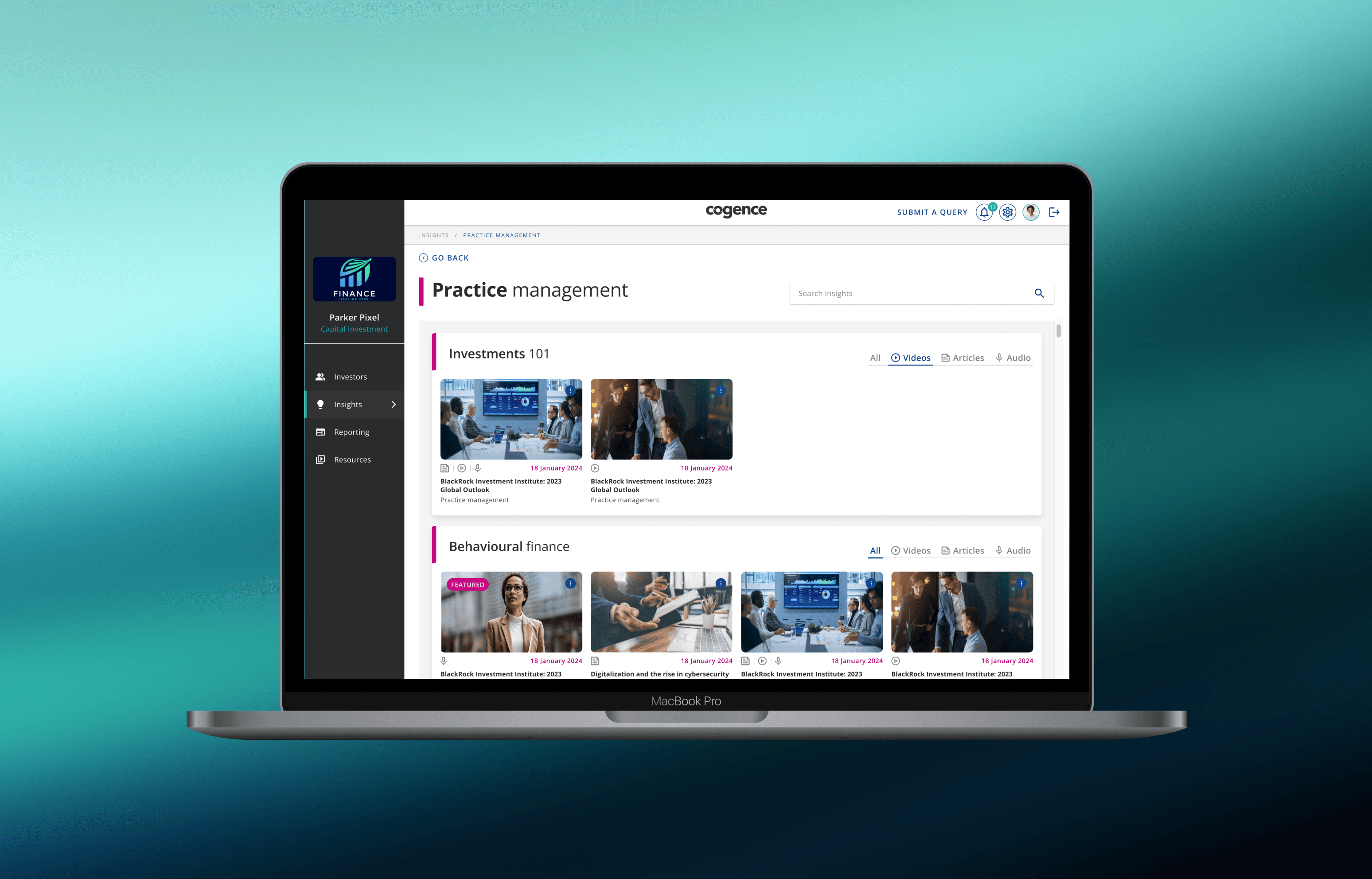 As new feature design for Cogence’s investment platform, I led the design of the Insights Feature, a curated content hub designed to empower financial advisors with timely, credible, and actionable information. The goal was to simplify how advisors access market intelligence, platform updates, and educational materials while embedding the feature into a new, unified design system. My approach balanced user-centered design, visual consistency, and scalable systems thinking, ensuring both immediate usability and long-term design efficiency.